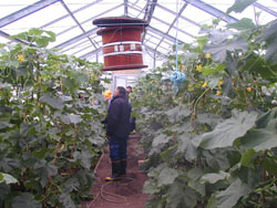 og en "koldhus"-afdeling fra 2005, altså en afdeling uden opvarmning. Drivhuset bruges i første halvdel af sæsonen til småplanteproduktion, senere til grønsagsproduktion.